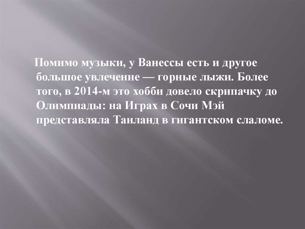 Помимо музыки, у Ванессы есть и другоебольшое увлечение — горные лыжи. Более