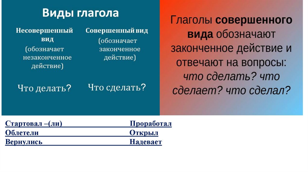 • Создава́ть выска́зывания, его результат, конец действия или его