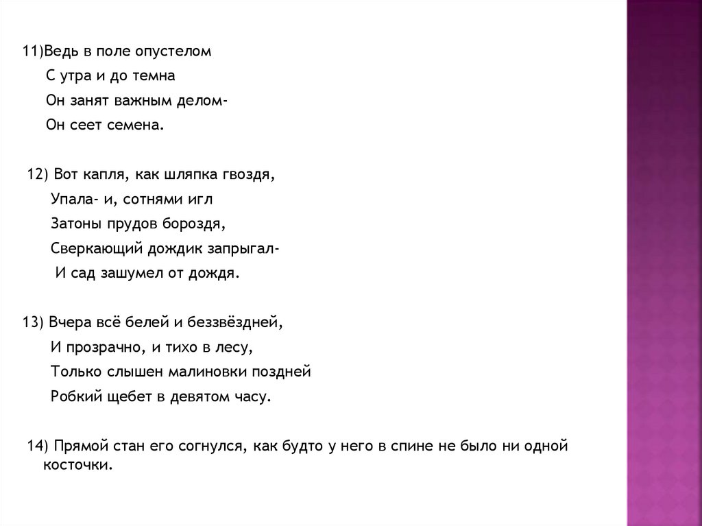 11)Ведь в поле опустеломС утра и до темна