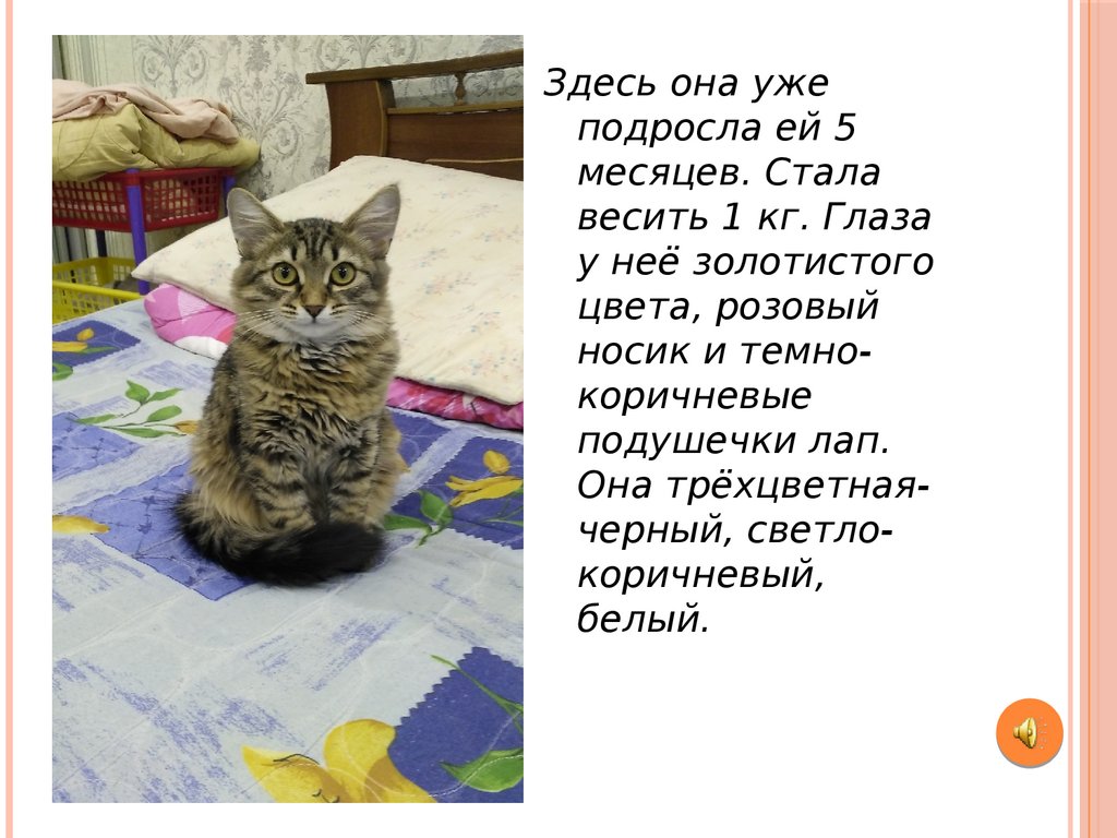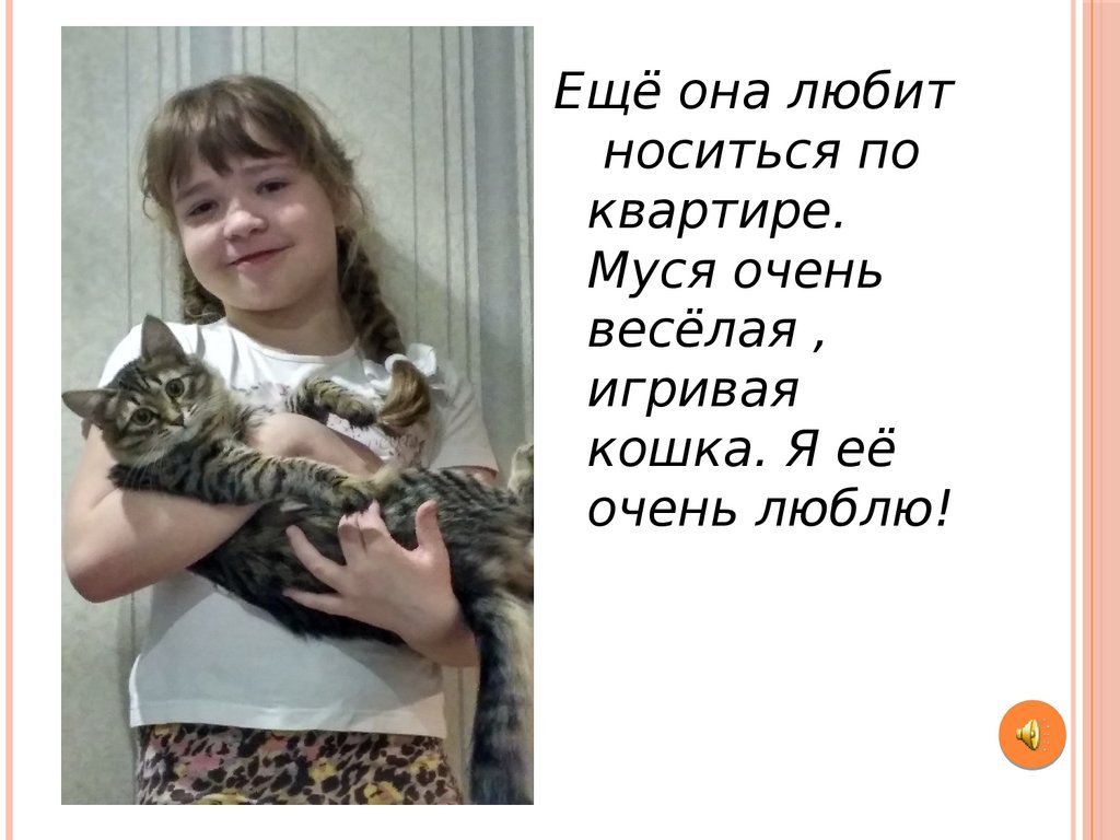 У меня есть кошка Муся. Онапоявилась в моей семье давно, мне