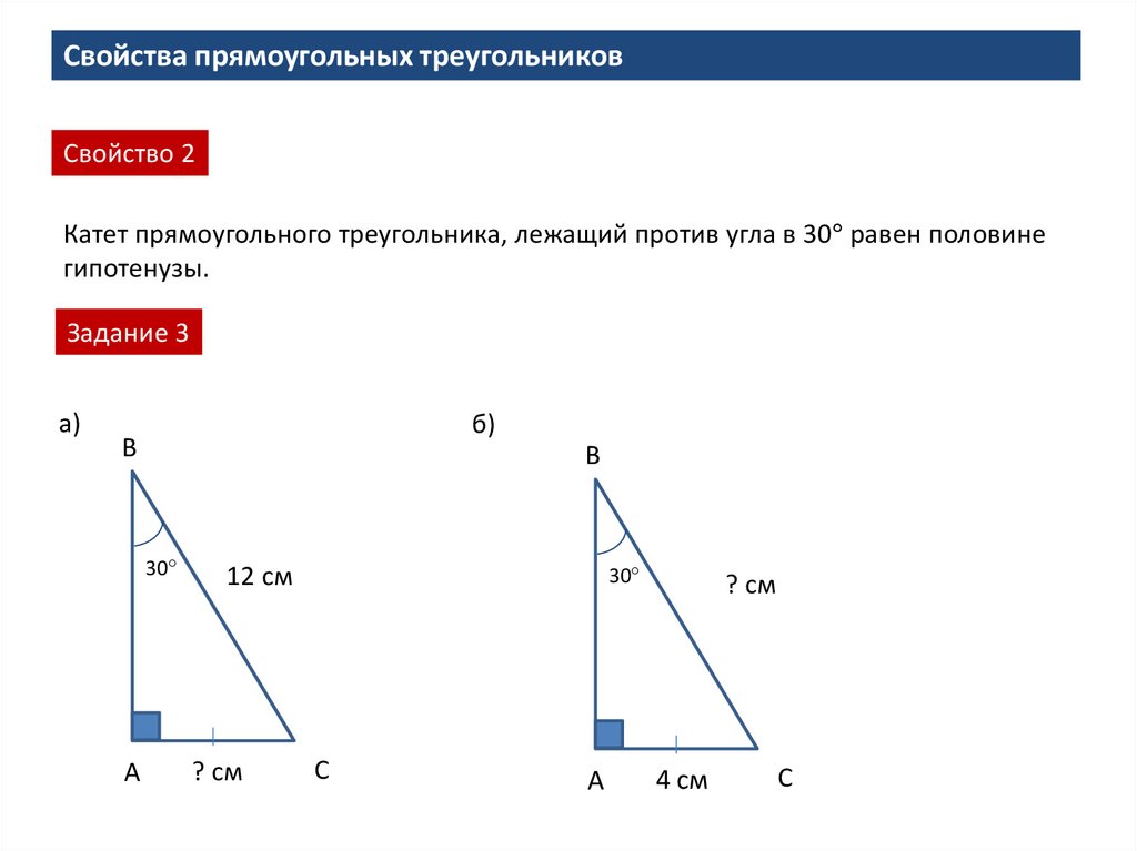 Свойства прямоугольных треугольниковСвойство 2