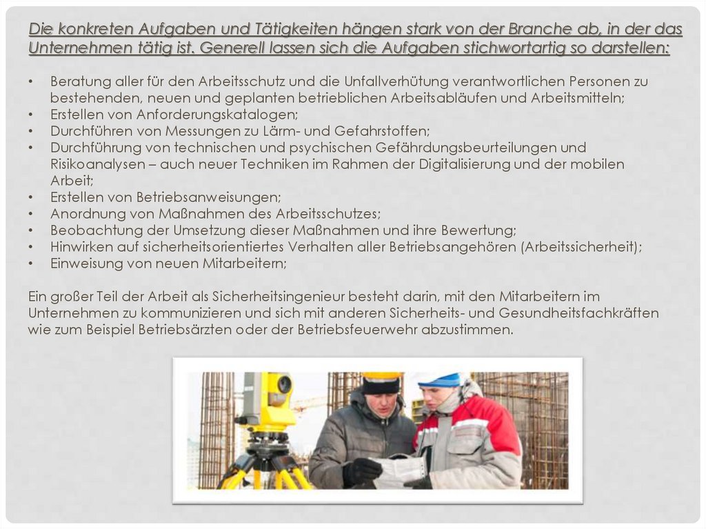 WAS IST EIN SICHERHEITSINGENIEUR?• Sicherheitsingenieure überwachen die umsetzung der gesetzlichen