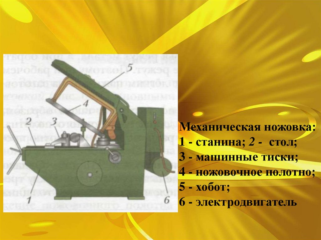 Механическая ножовка:1 - станина; 2 - стол;