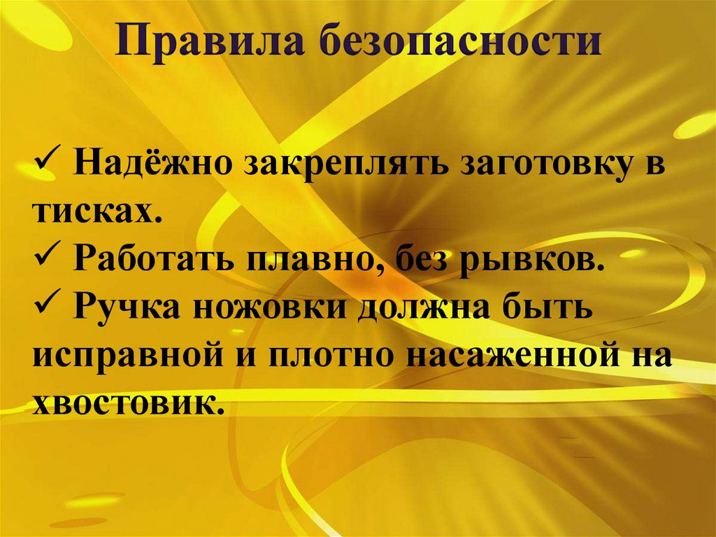 Правила безопасностиНадёжно закреплять заготовку в
