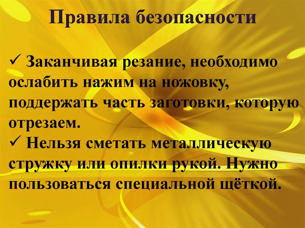 Правила безопасностиЗаканчивая резание, необходимо