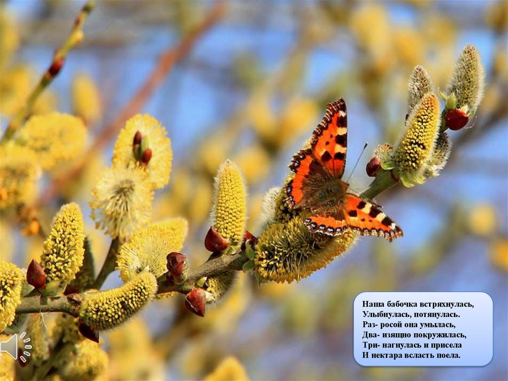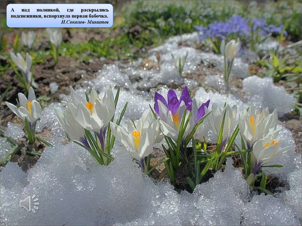А над полянкой, где раскрылисьподснежники, вспорхнула первая бабочка.