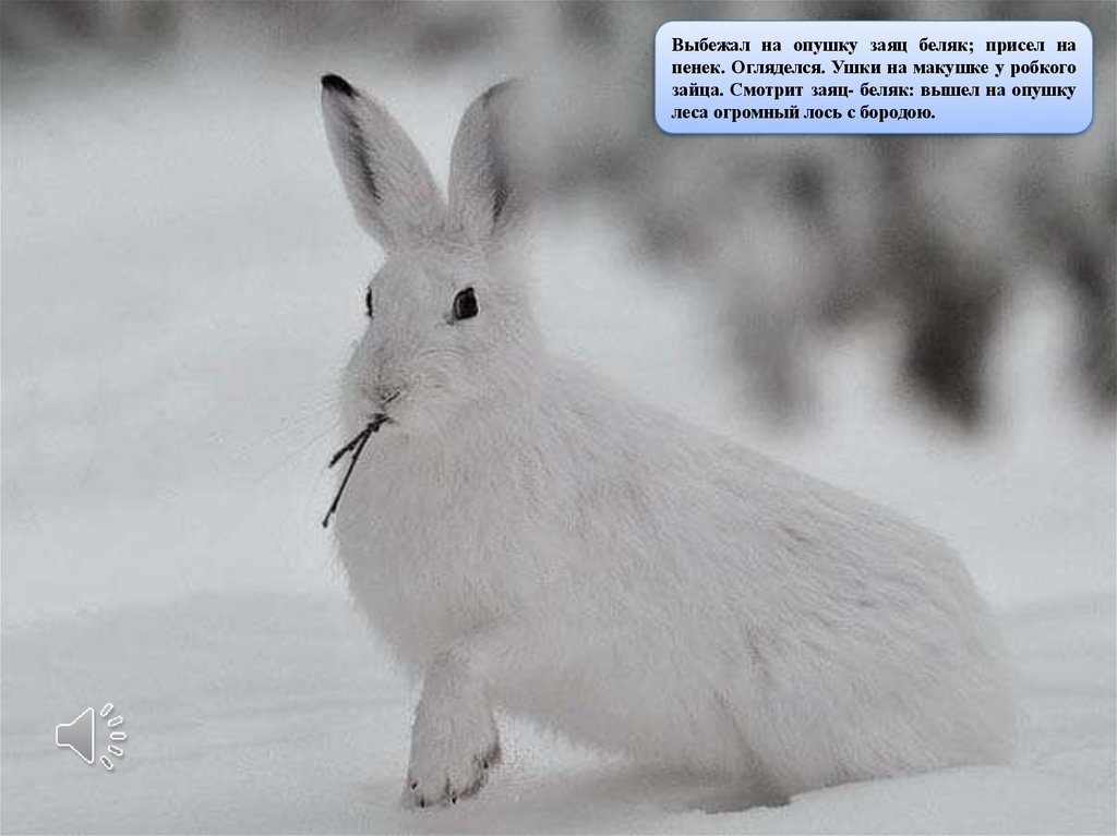 зайца. Смотрит заяц- беляк: вышел на опушку