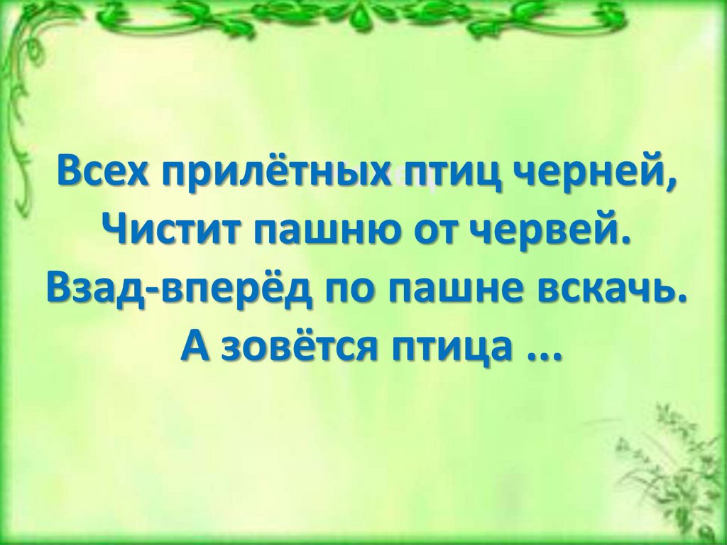 Всех прилётных птиц черней,Чистит пашню от червей.