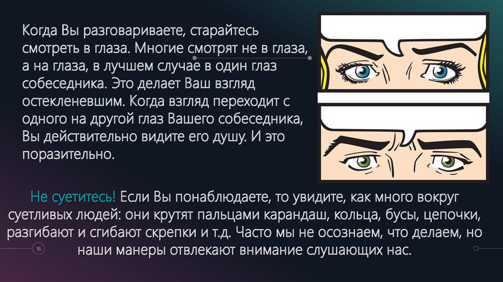 Непосредственно перед началом речи говорить подчеркнуто медленно и спокойно.