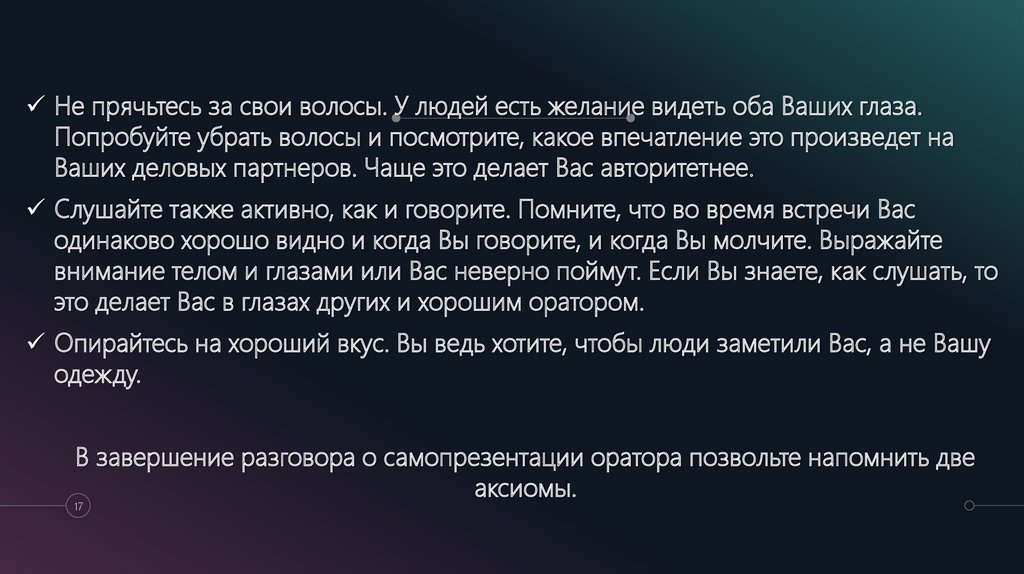 Важно, что самопрезентация происходит всегда,независимо от того, насколько оратор себе ее