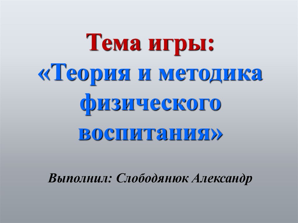 Тема игры:«Теория и методика