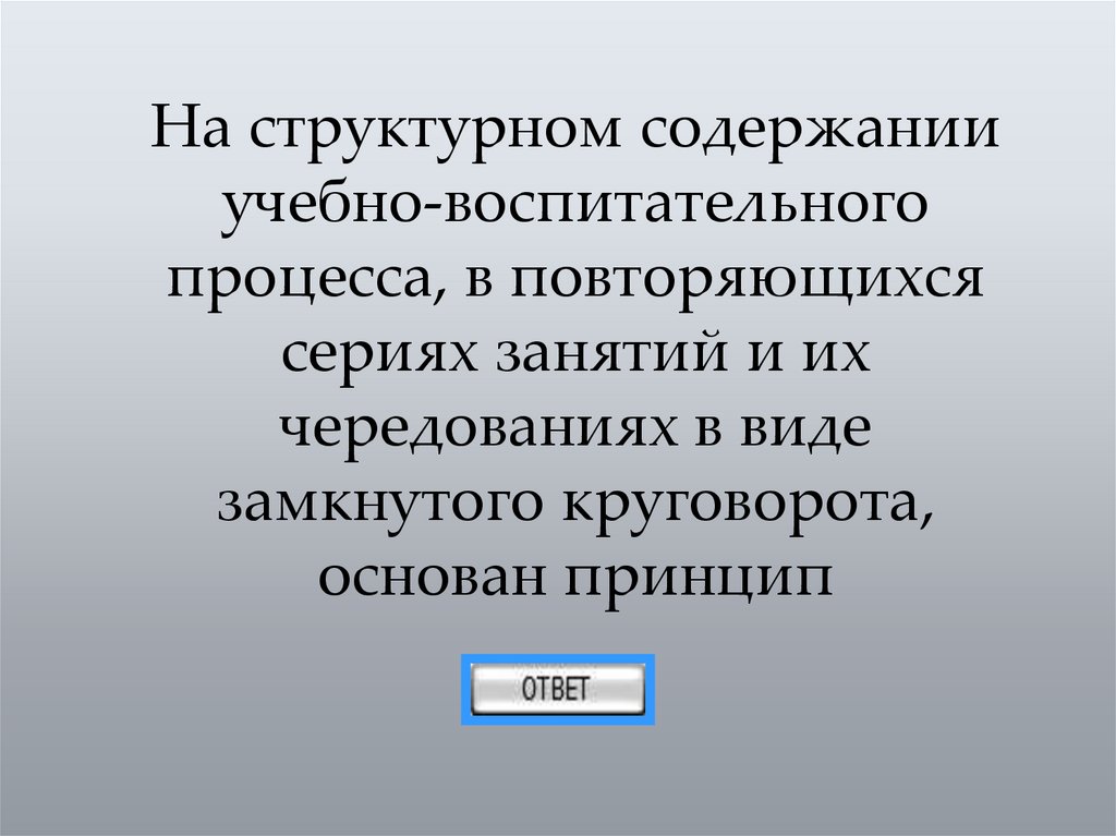 44. Принцип циклического построения занятий предусматривает три вида циклов. Назовите их