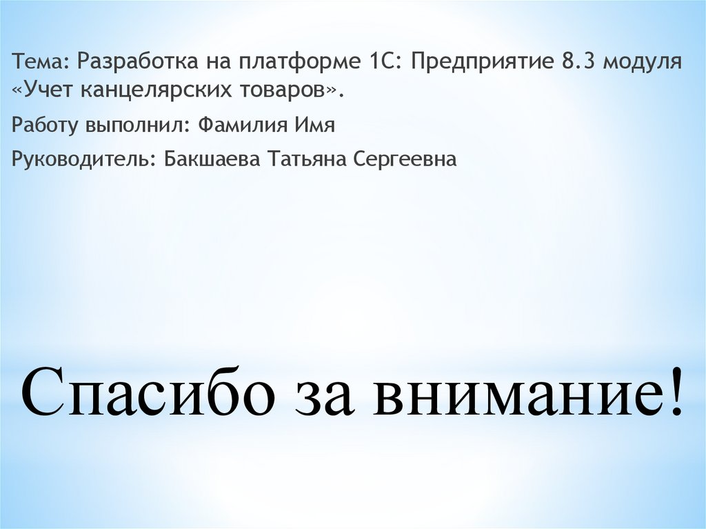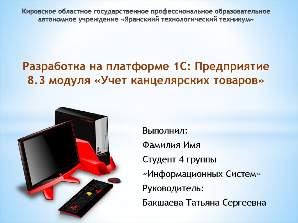 Тема: Разработка на платформе 1С: Предприятие 8.3 модуля«Учет канцелярских товаров».