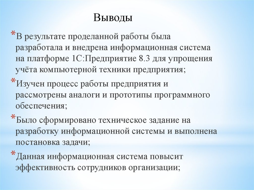 Выводы*В результате проделанной работы была