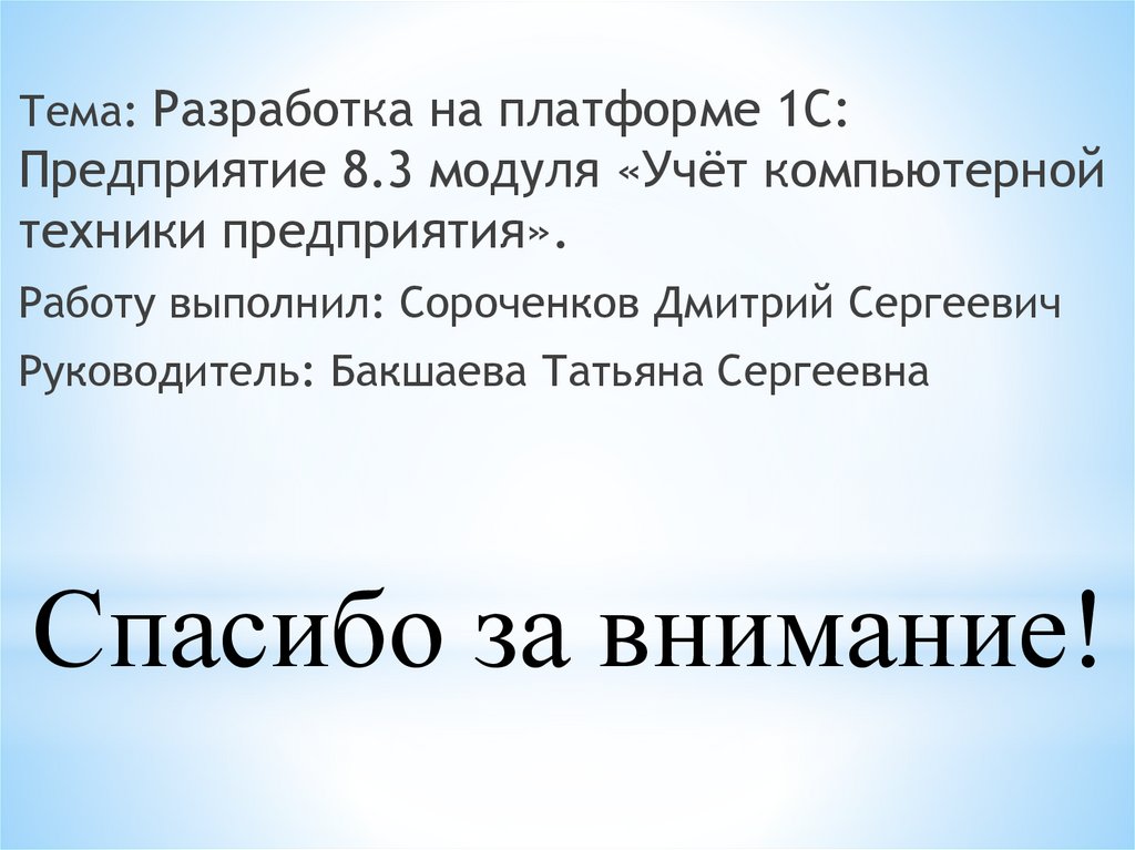 Тема: Разработка на платформе 1С:Предприятие 8.3 модуля «Учёт компьютерной
