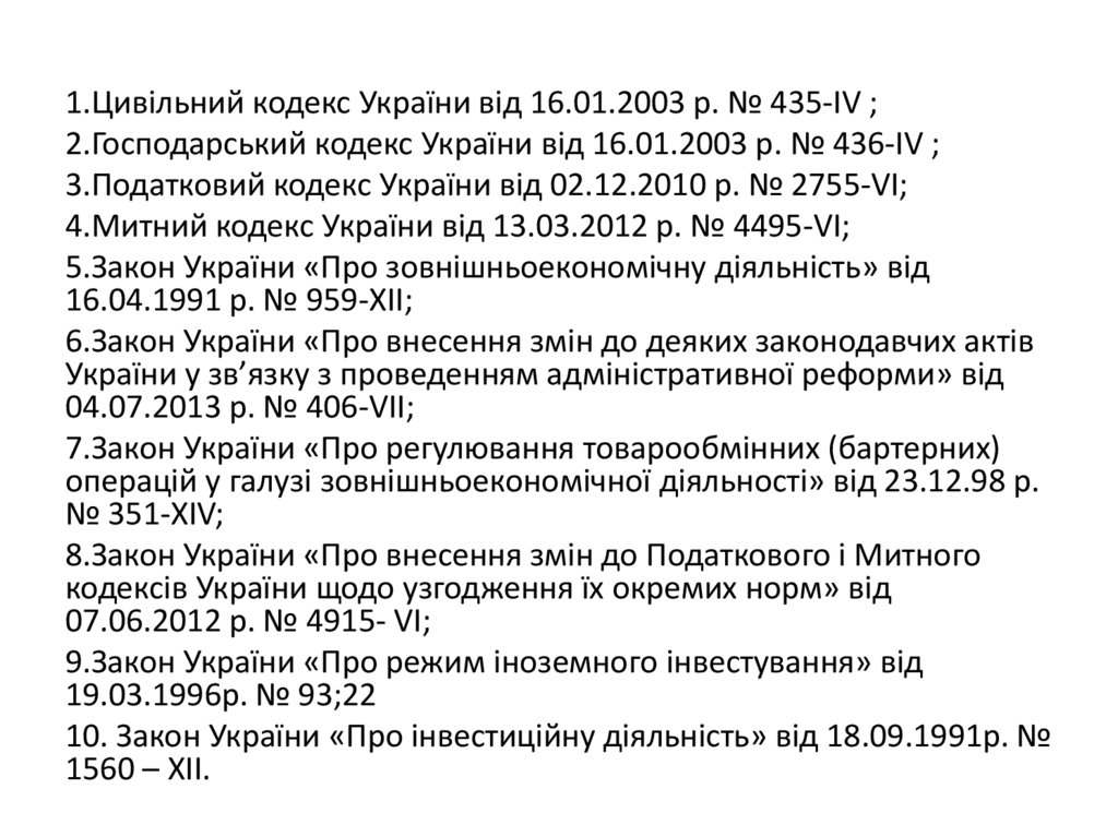 10. Закон України «Про інвестиційну діяльність» від 18.09.1991р. №