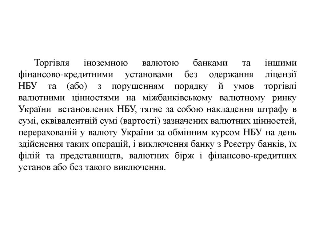Торгівля іноземною валютою банками та іншимифінансово-кредитними установами без одержання ліцензії