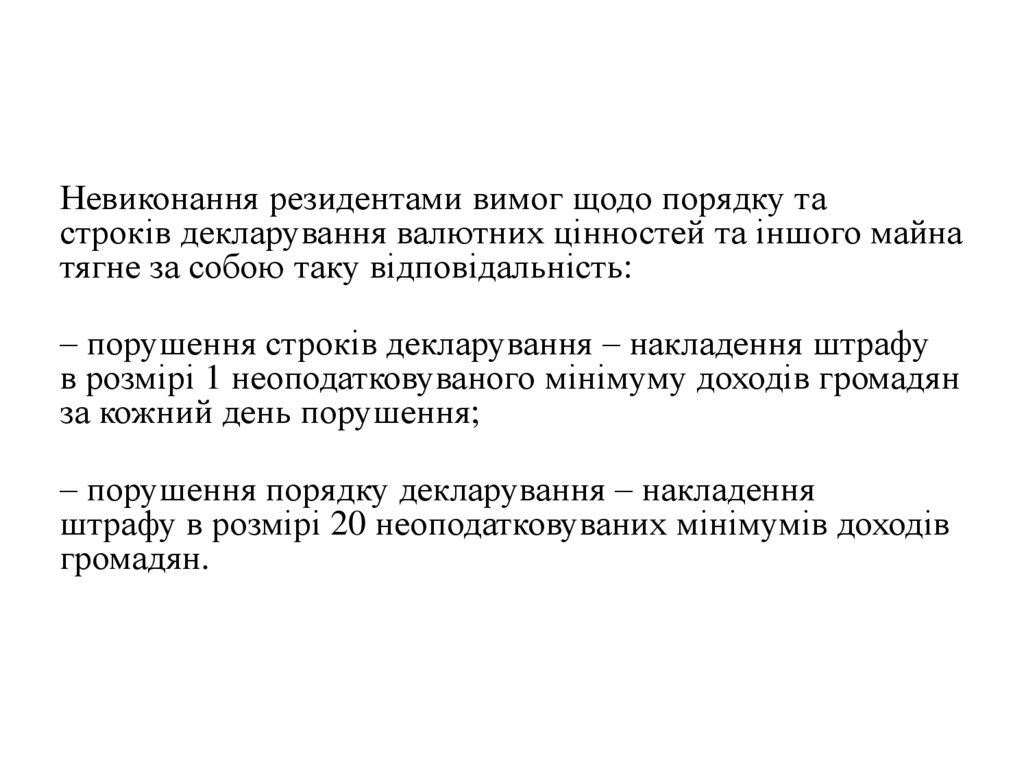Невиконання резидентами вимог щодо порядку тастроків декларування валютних цінностей та іншого майна