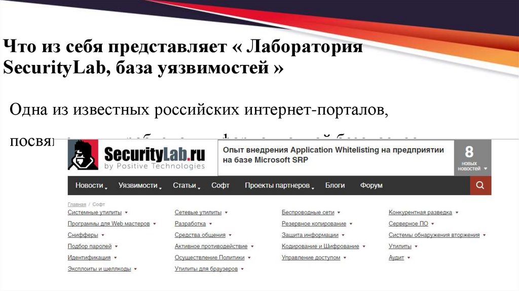 Что из себя представляет « ЛабораторияSecurityLab, база уязвимостей »