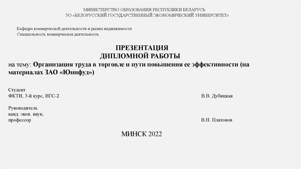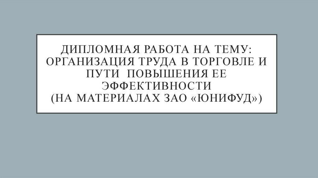 1. Дипломная работа на тему: Организация труда в торговле и пути повышения ее эффективности (на материалах ЗАО «юнифуд»)