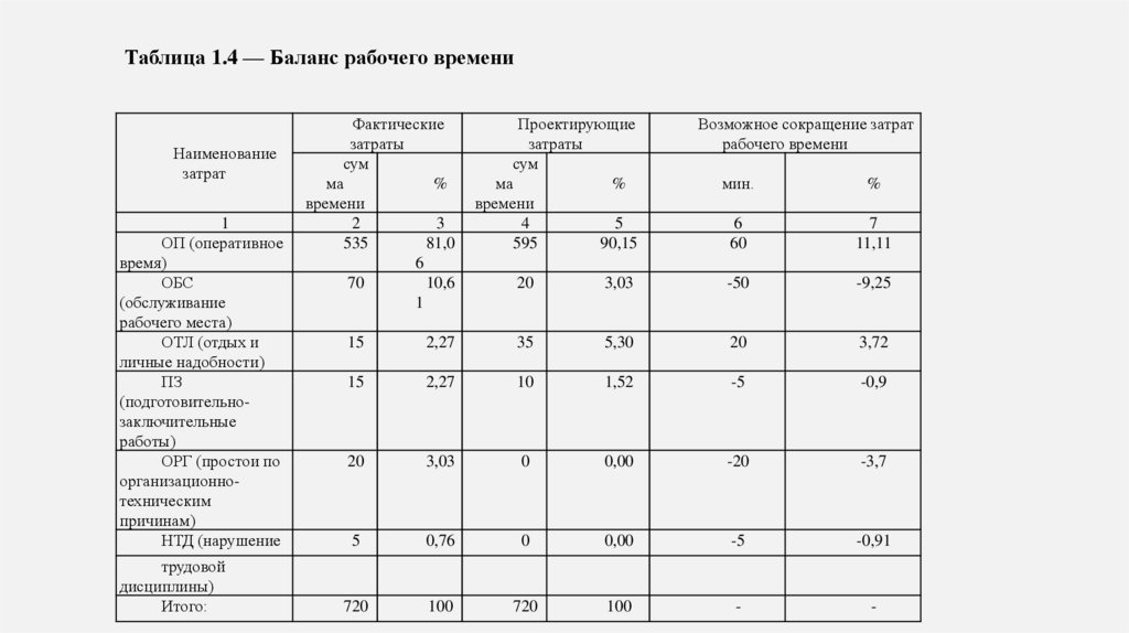 Таблица 1.4 — Баланс рабочего времениНаименование