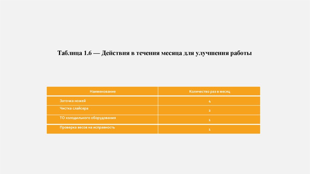 Таблица 1.6 — Действия в течения месяца для улучшения работыНаименование