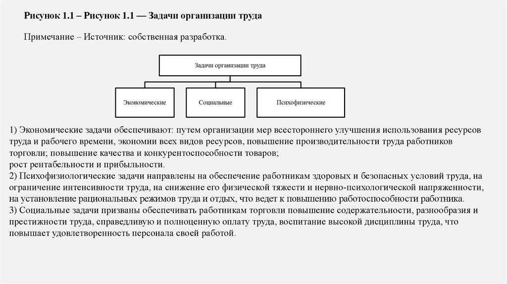 Рисунок 1.1 – Рисунок 1.1 — Задачи организации трудаПримечание – Источник: собственная разработка.