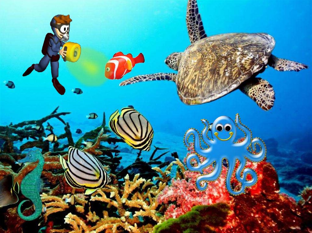 подошвами к телу крупных морских обитателей и
