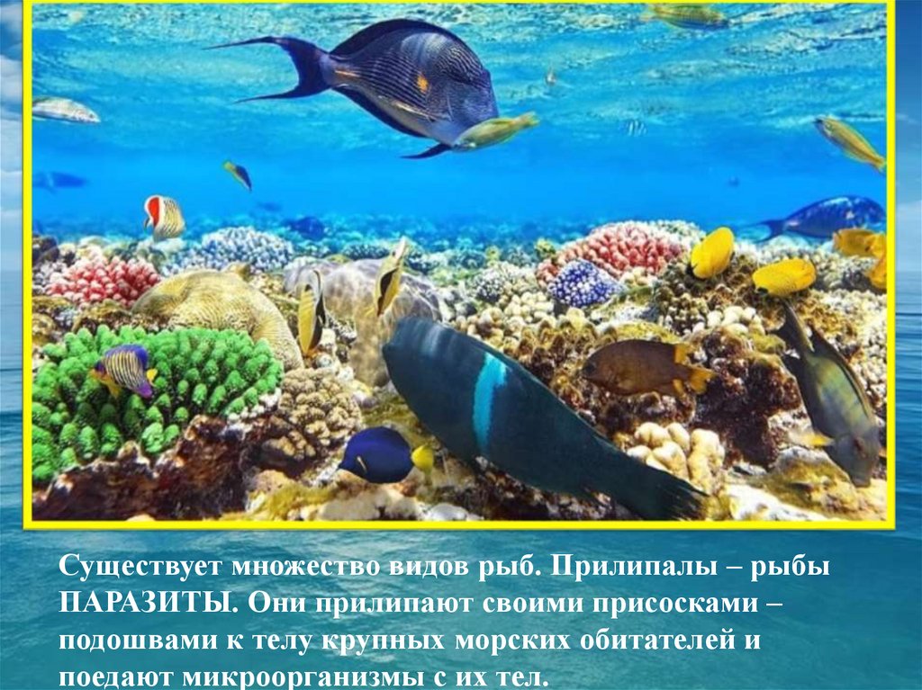 Существует множество видов рыб. Прилипалы – рыбыПАРАЗИТЫ. Они прилипают своими присосками –