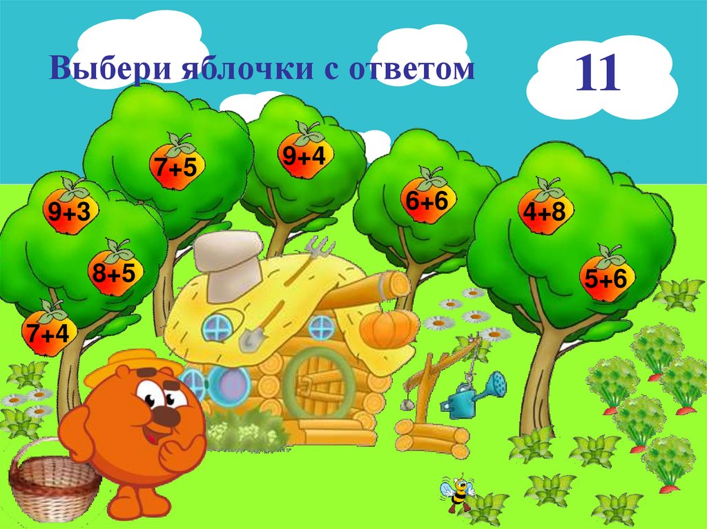 Выбери яблочки с ответом7+5