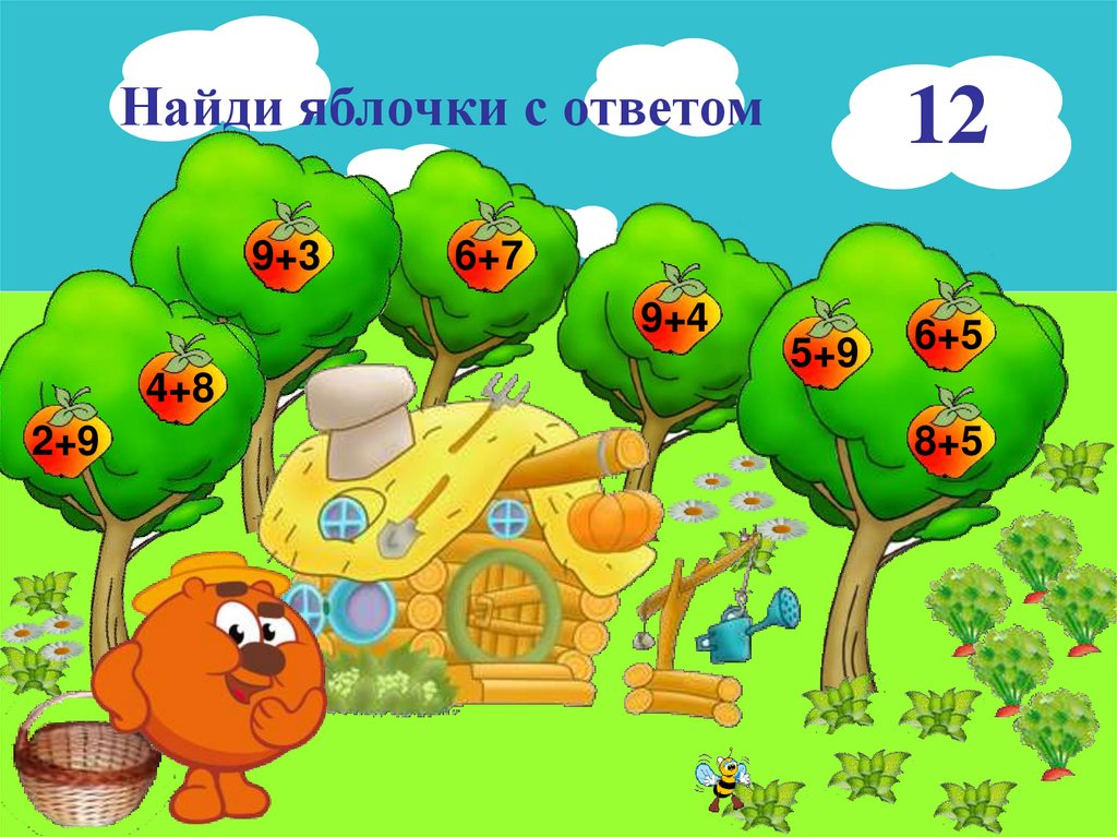 Найди яблочки с ответом9+3