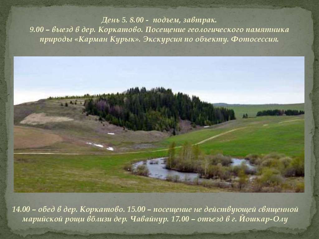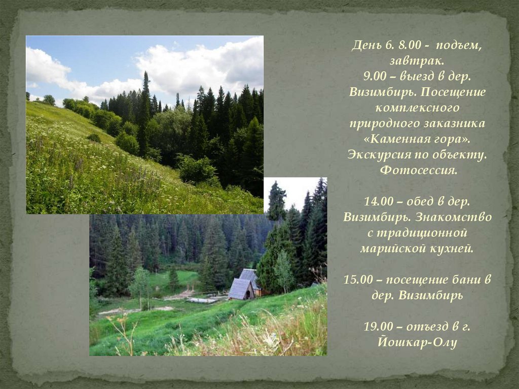 марийской рощи вблизи дер. Чавайнур. 17.00 – отъезд в г. Йошкар-Олу
