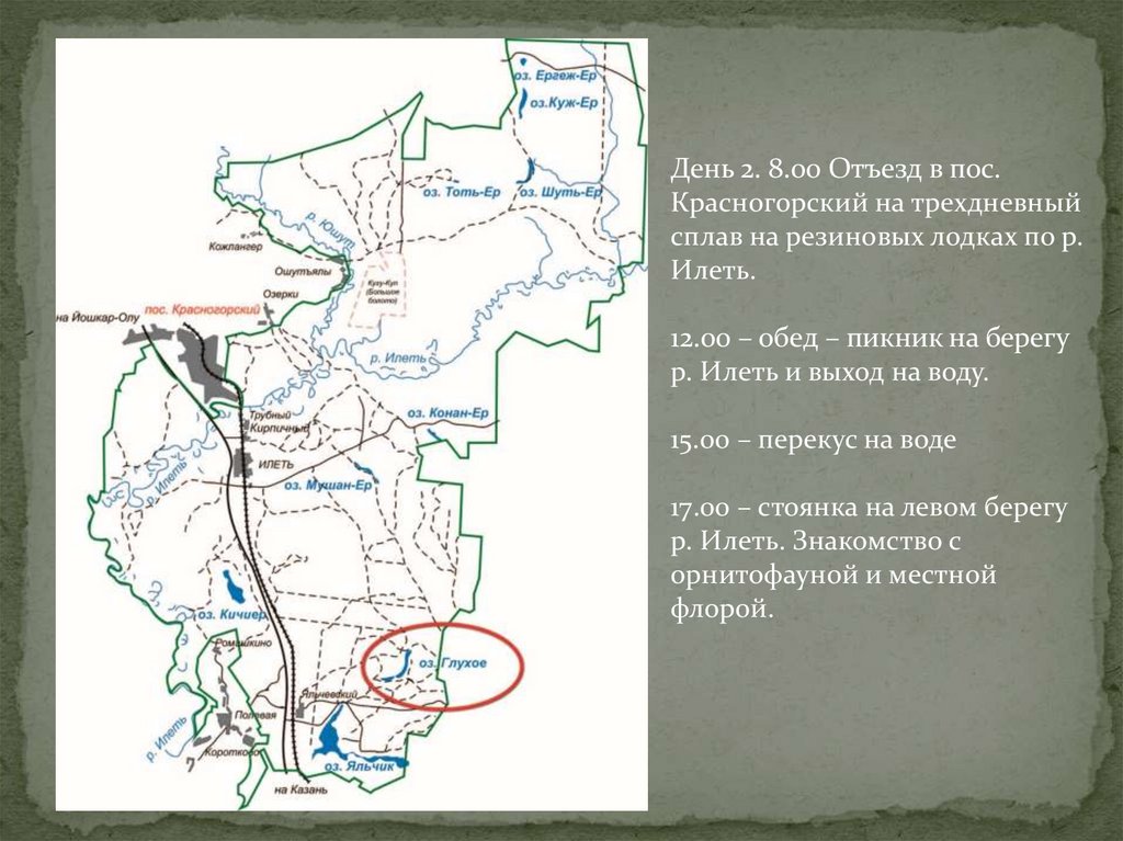 3. Маршрут путешествия: г. Йошкар-Ола – Красногорск – река Илеть – дер. Коротково - дер. Коркатово – Визимбирь и Горное Заделье –