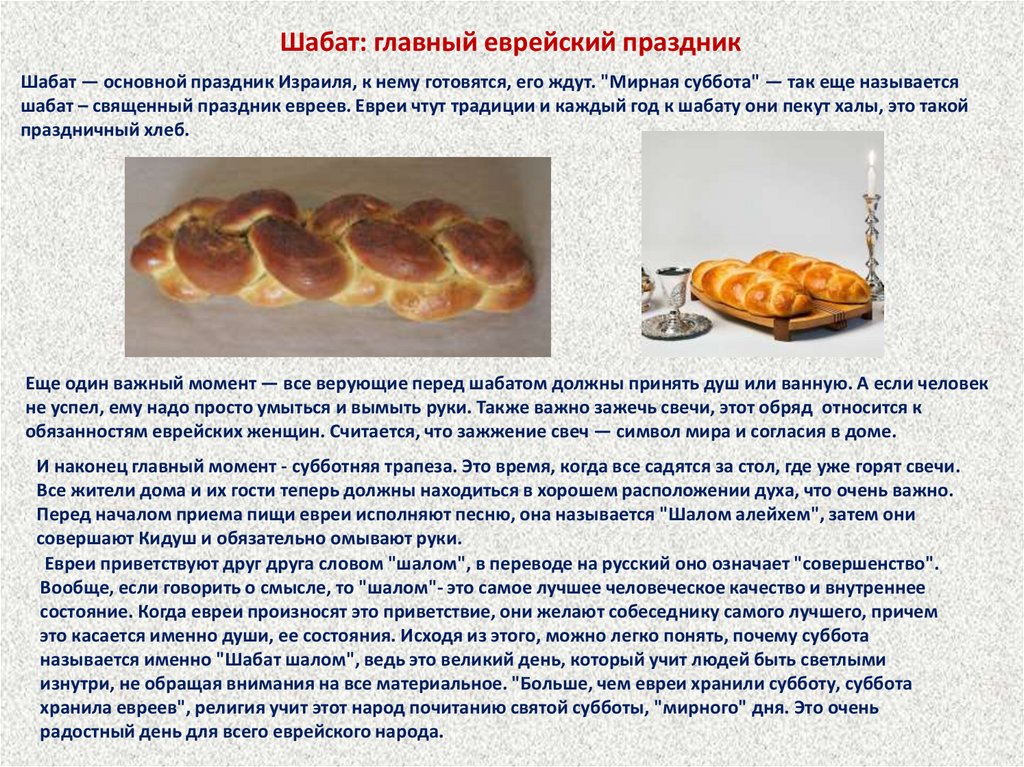 шабат – священный праздник евреев. Евреи чтут традиции и каждый год к шабату они пекут халы, это такой