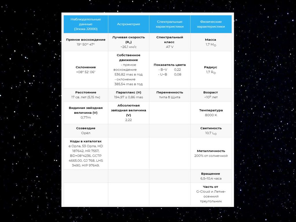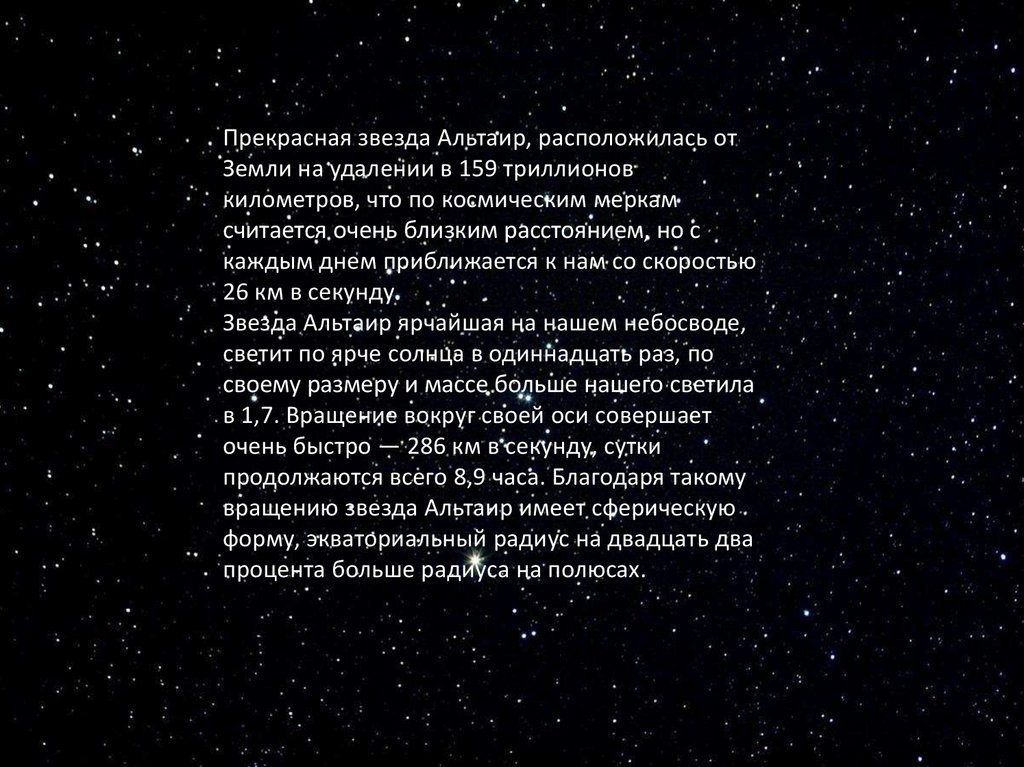 Прекрасная звезда Альтаир, расположилась отЗемли на удалении в 159 триллионов