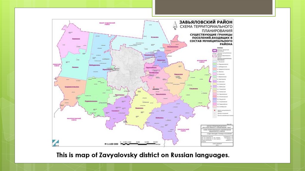 This is map of Zavyalovsky district on Russian languages.4. Toponymy