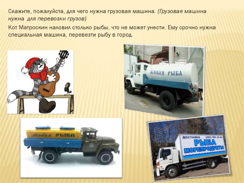 специальная машина, перевезти рыбу в город.