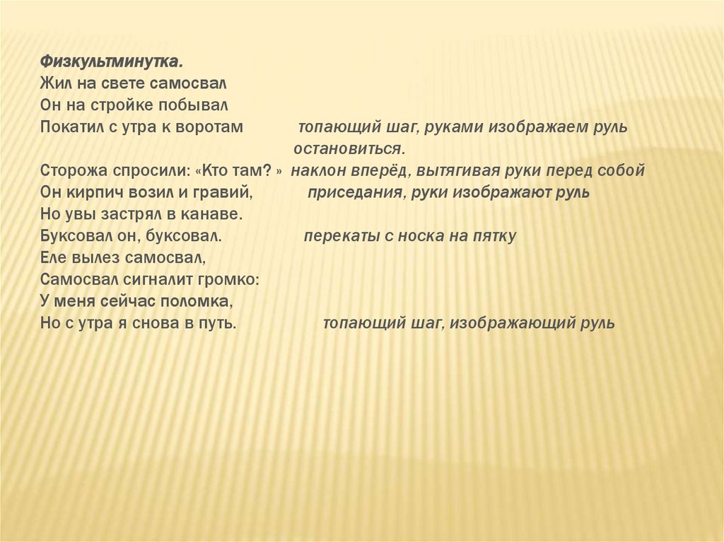 Физкультминутка.Жил на свете самосвал
