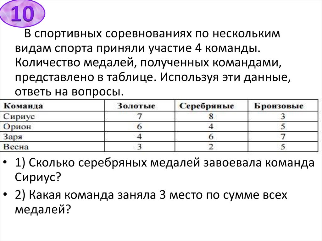 10В спортивных соревнованиях по нескольким