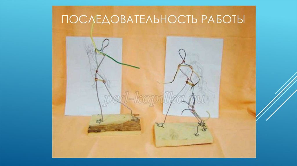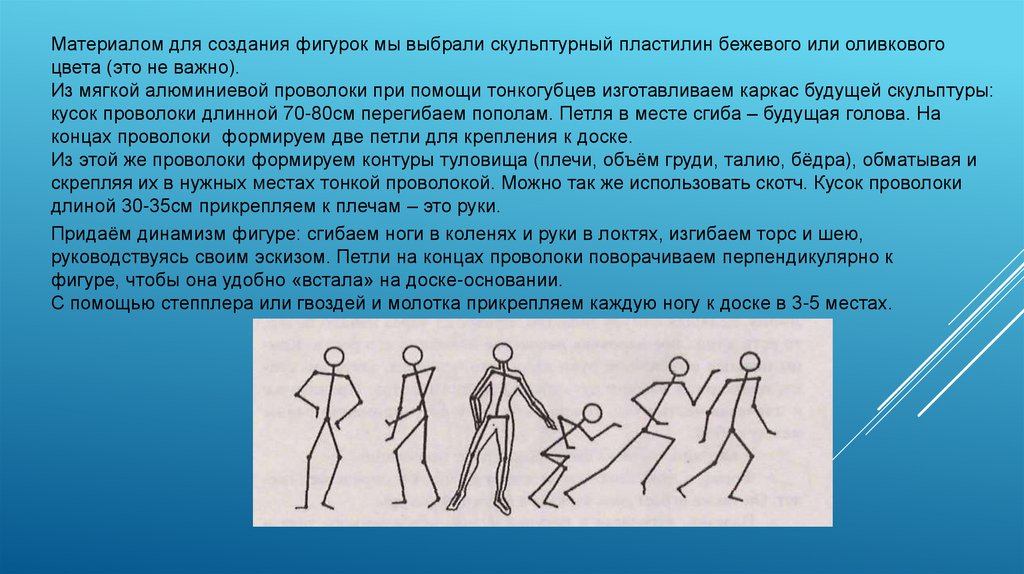 Из мягкой алюминиевой проволоки при помощи тонкогубцев изготавливаем каркас будущей скульптуры: