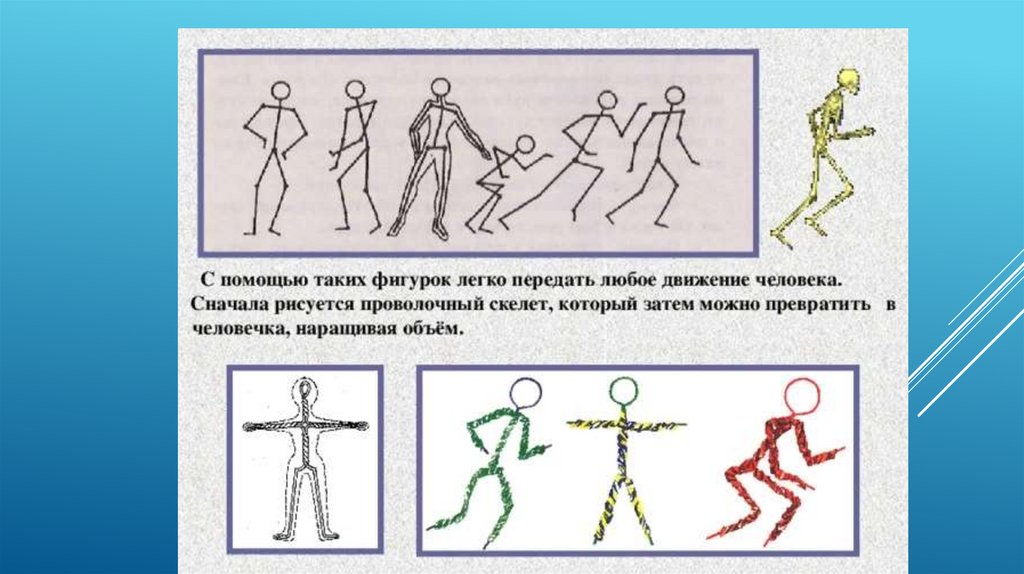 Придаём динамизм фигуре: сгибаем ноги в коленях и руки в локтях, изгибаем торс и шею,
