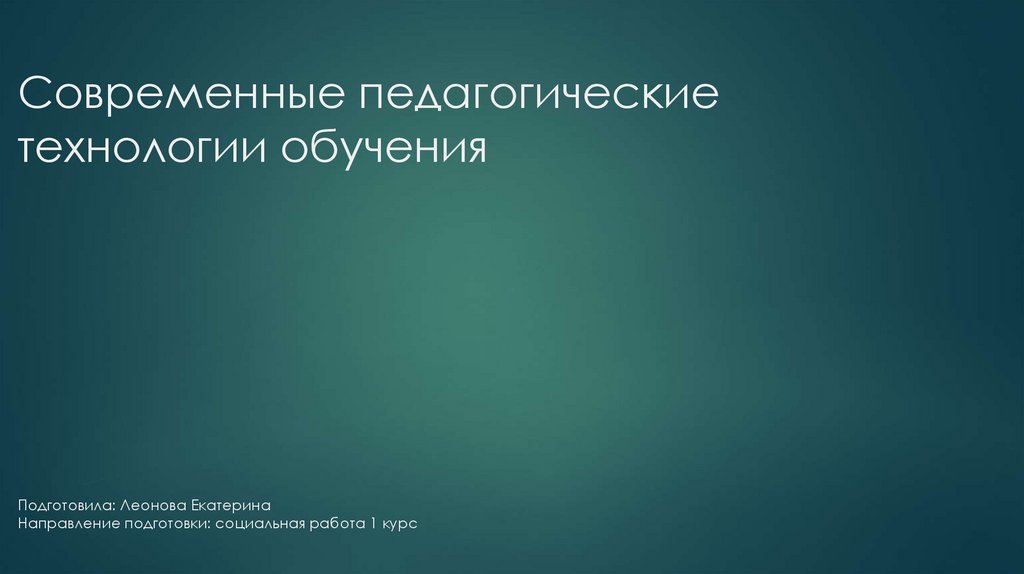 1. Современные педагогические технологии обучения Подготовила: Леонова Екатерина Направление подготовки: социальная работа 1 курс