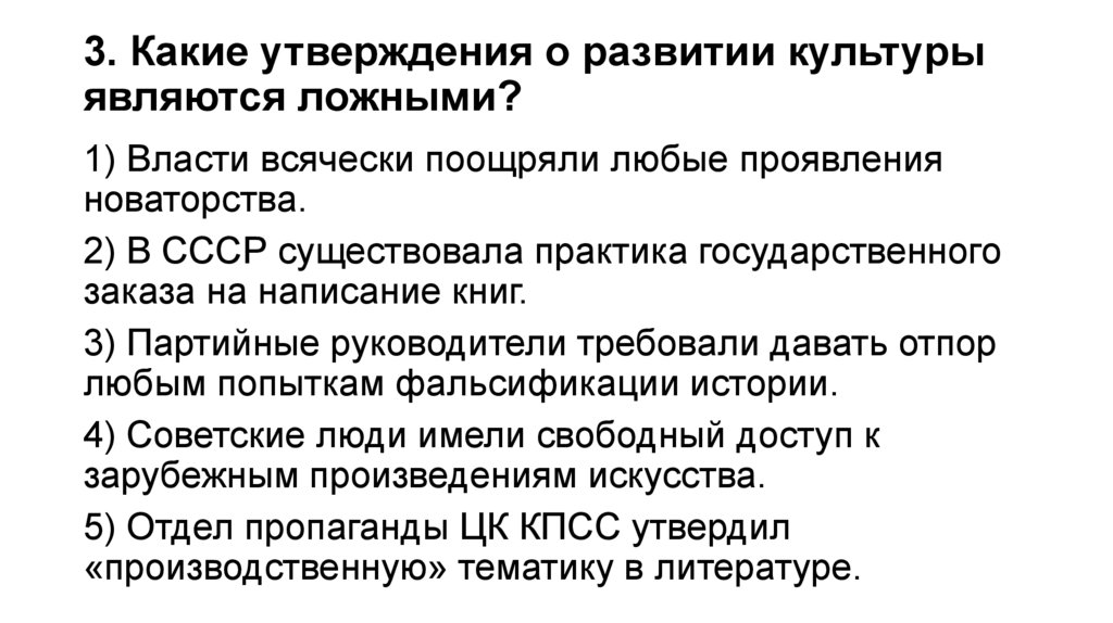 1. Какое утверждение о повседневной жизнив СССР является ложным?