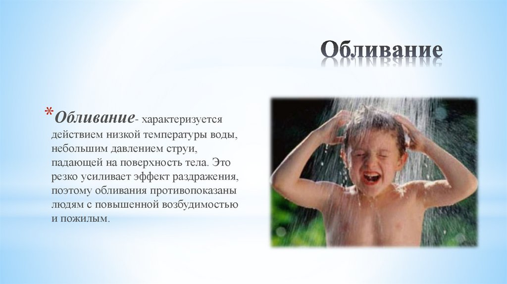 *Обливание- характеризуетсядействием низкой температуры воды,