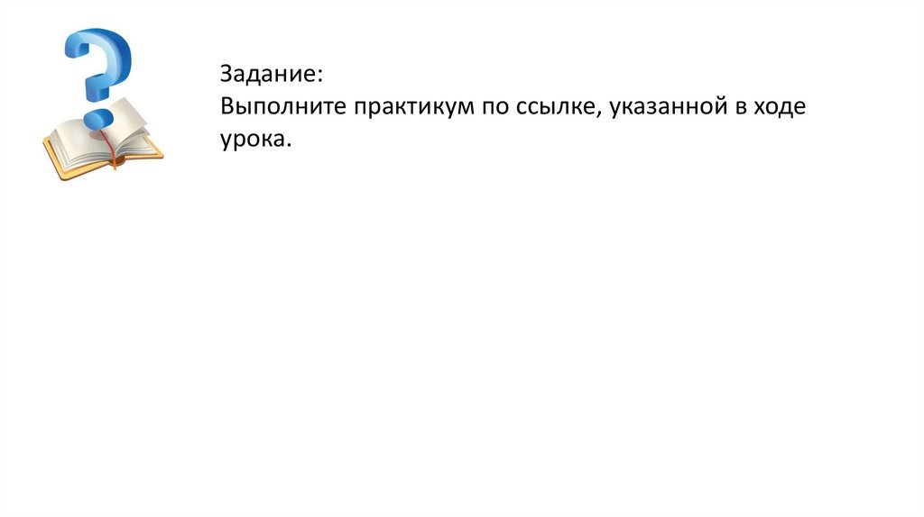 Задание:Выполните практикум по ссылке, указанной в ходе