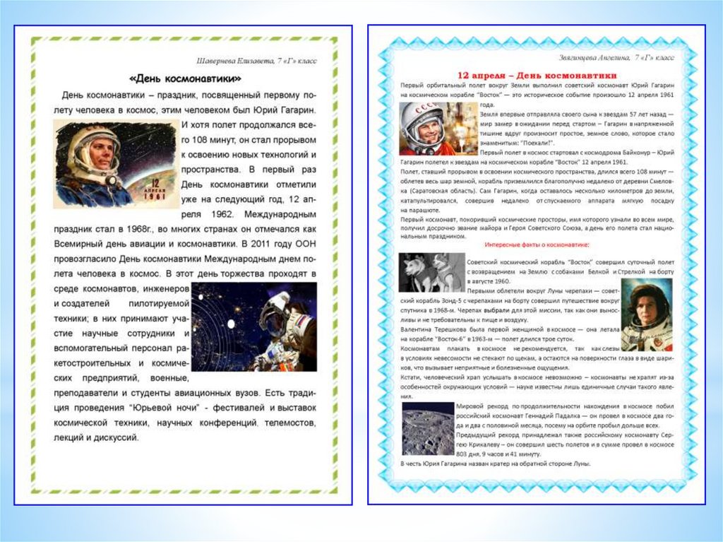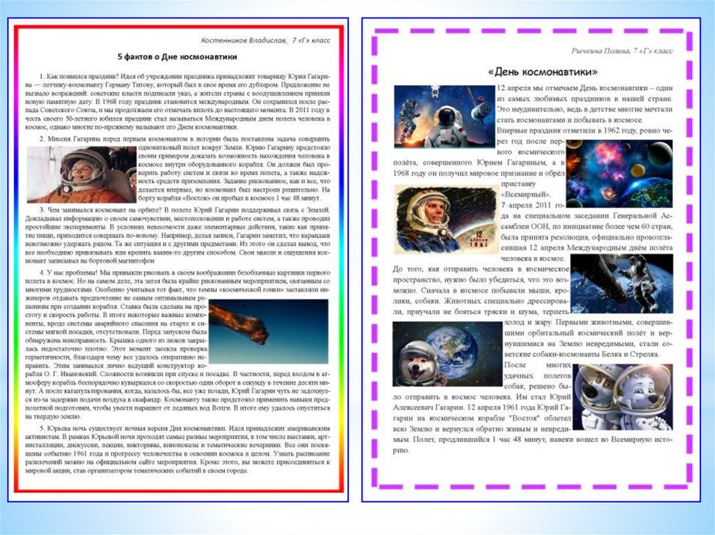 День космонавтики. Макеты рубрики «Календарь знаменательных дат»