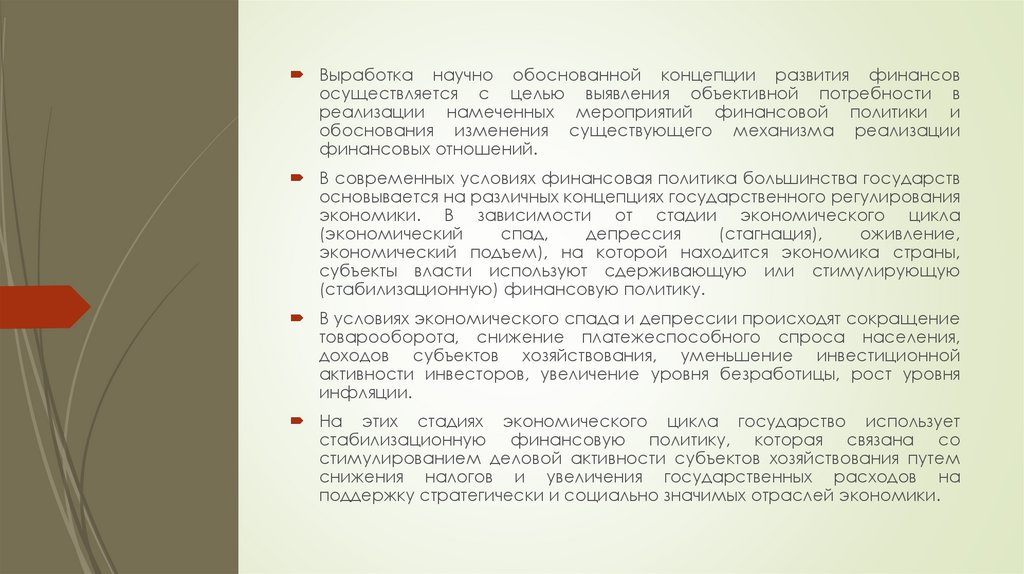 Выработка научно обоснованной концепции развития финансовосуществляется с целью выявления объективной потребности в