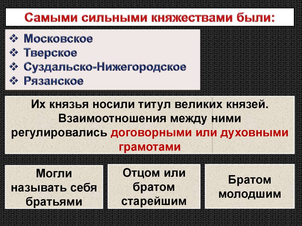 Их князья носили титул великих князей.Взаимоотношения между ними