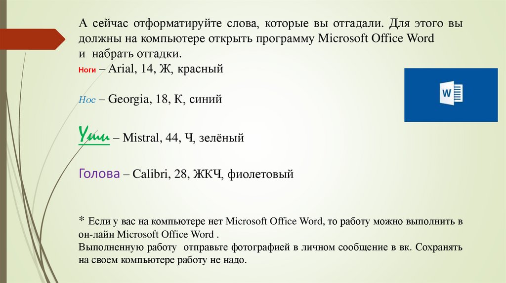 А сейчас отформатируйте слова, которые вы отгадали. Для этого выдолжны на компьютере открыть программу Microsoft Office Word