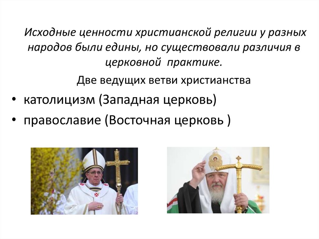 Исходные ценности христианской религии у разныхнародов были едины, но существовали различия в